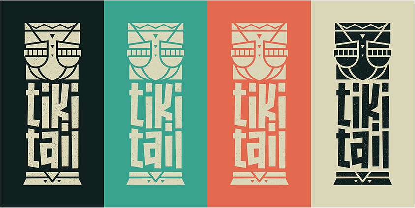 The primary colours had to be an obvious relation to the Hawaiian/tiki culture and getaway destinations; the places that people think of when they hear the word “tiki”. Turquoise for the sea along with the calm white, beige found on the frothy tips of sea waves and an orange sunset was my inspiration for colour.
